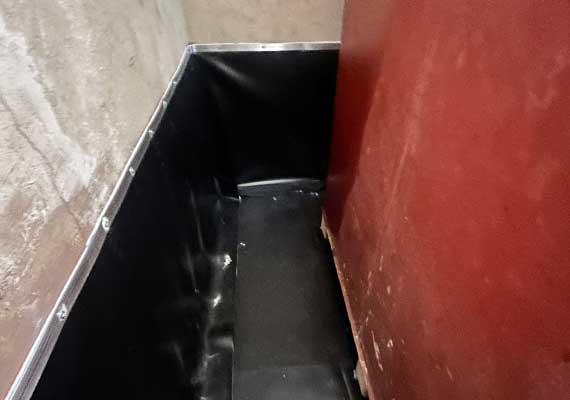 6. Die Seitenwände der Tankraumfolie werden hochgeklappt bzw. als Seitenbahnen eingebracht und auf Höhe (gemäß der Auffangvolumenberechnung) mit Leisten an der Wand befestigt